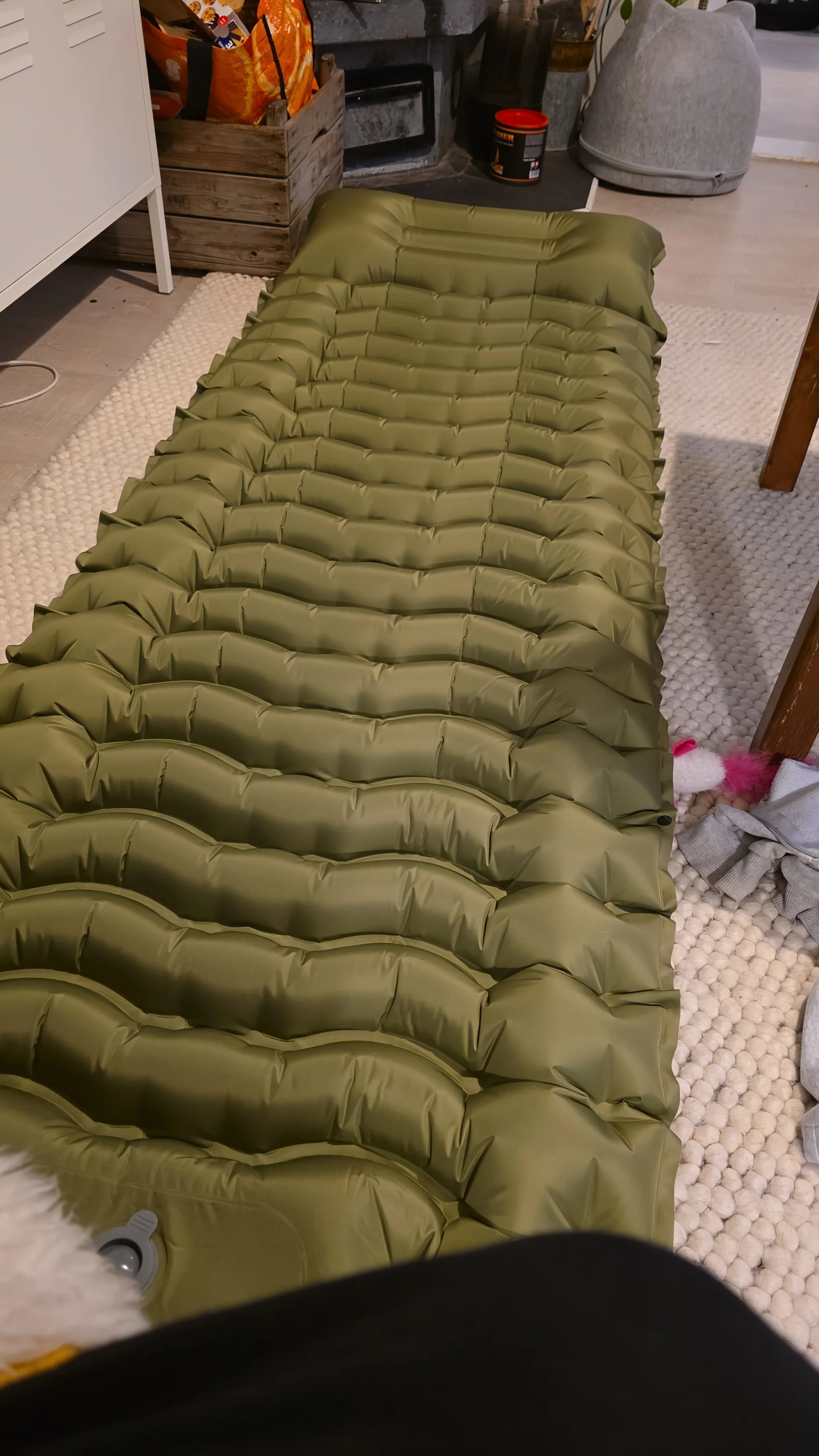 Same as the photo, I arrive before the date that seems perfect to me. Without any air leakage and with patches included. The weight is 650gr and supports up to 150 kilos in weight